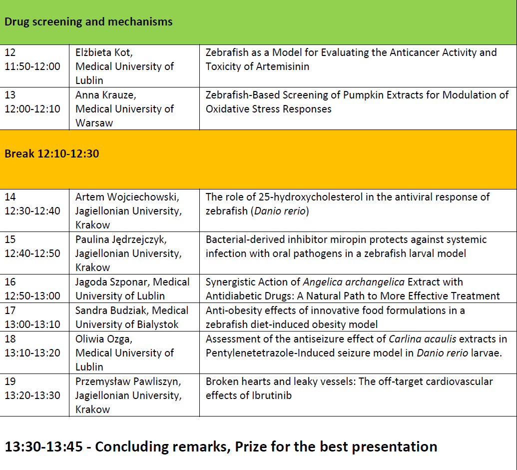 The abstract book will be available on-line on the Polish Zebrafish Society website.